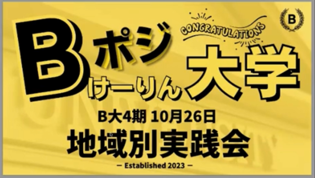 10月26日、 Bポジけーりん大学(B大)の地域別 … 続きを読む Bポジけーりん大学 地域別実践会 開催